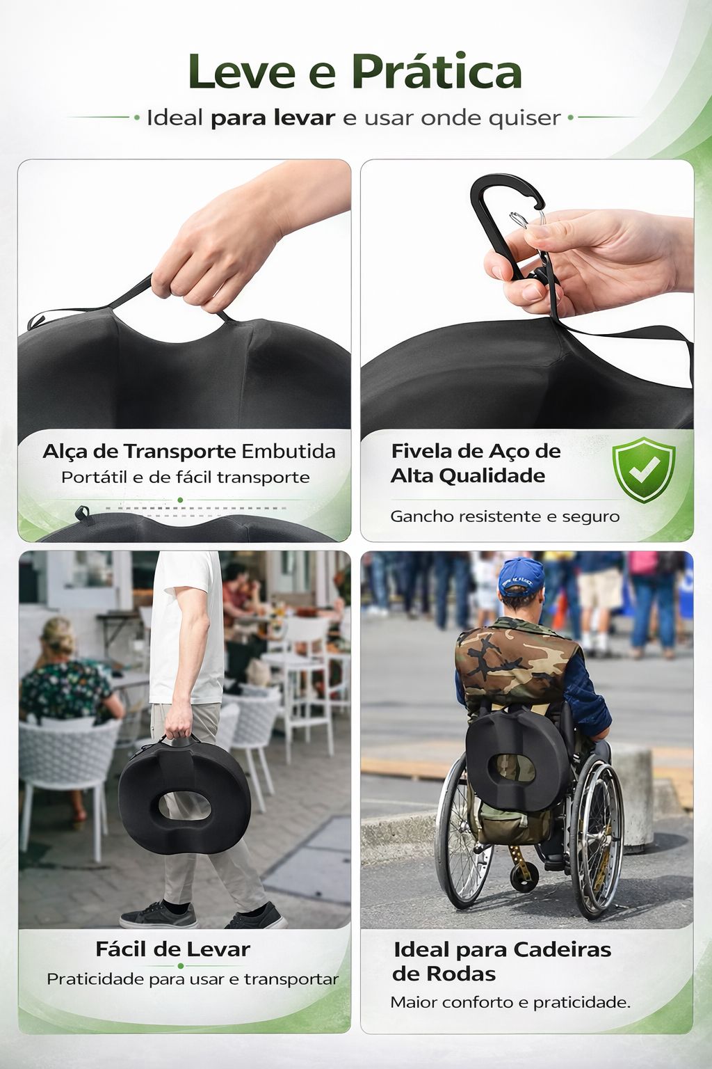 Alça de transporte e gancho: como almofada de cadeira, pode ser usada no escritório, em casa, ao ar livre, em viagens ou cadeira de rodas, etc., a alça e o gancho são necessários para transportar facilmente? Você pode pegar a almofada donut pela alça, pendurar a almofada donut em sua mochila, mala ou cadeira de rodas
