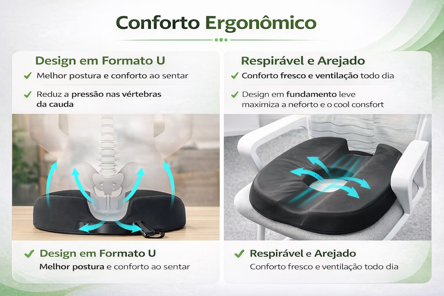 Suporte e conforto elevados: Durável e de suporte para apoiar uma melhor postura e ajudar a evitar atrito em áreas delicadas.