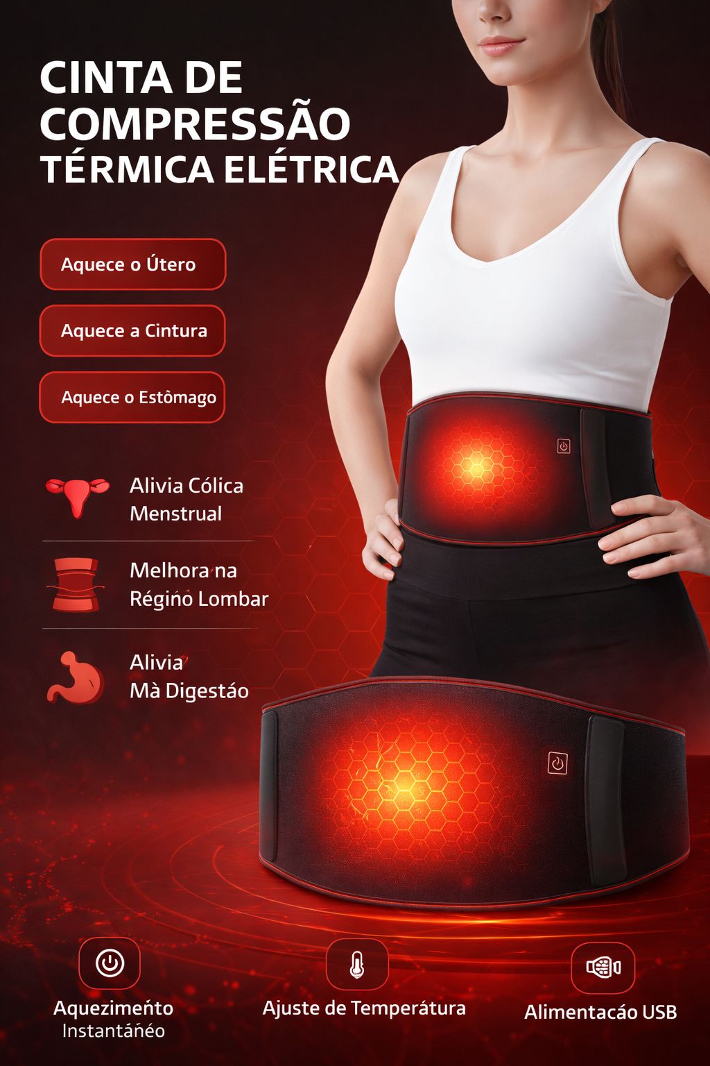 2.Cinto de aquecimento, terapia de aquecimento eficaz infravermelho distante, alivia dores musculares lombares, dores abdominais, desconforto estomacal, cólicas menstruais, etc.