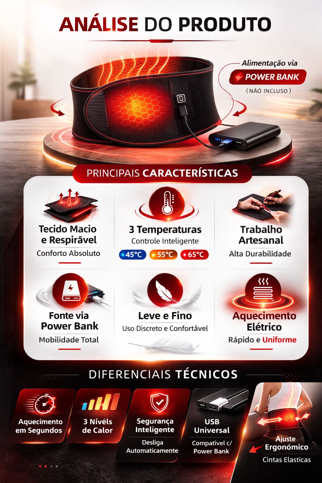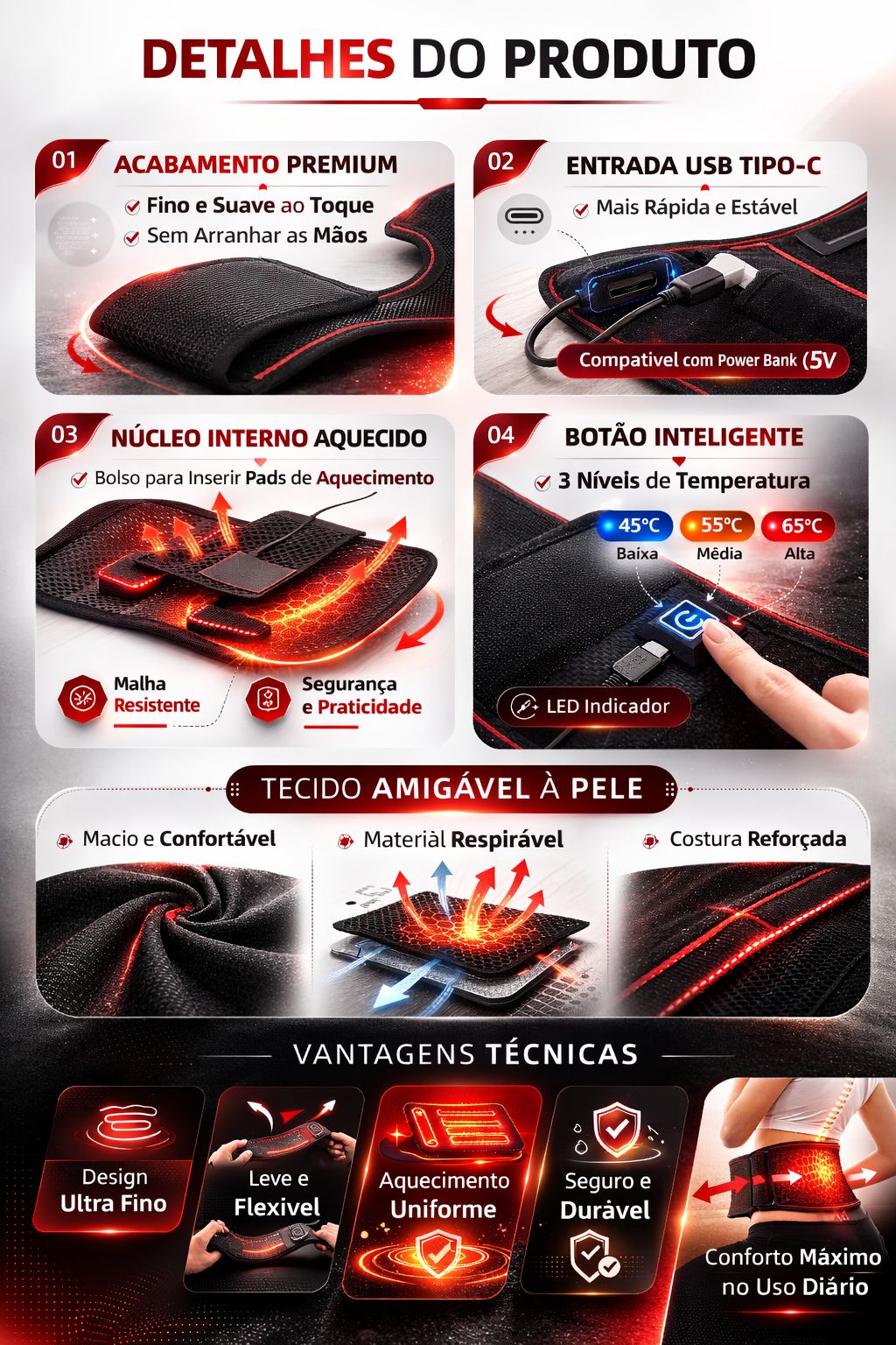 5. Uma folha de compressão é adicionada na parte de trás do cinto para aumentar a temperatura de aquecimento e a área da cintura e deixar o usuário mais confortável.